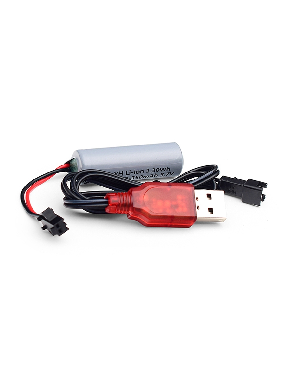 Автовоз работает от аккумулятора Li-ion 350 mAh 3.7V (USB-кабель для зарядки в комплекте).