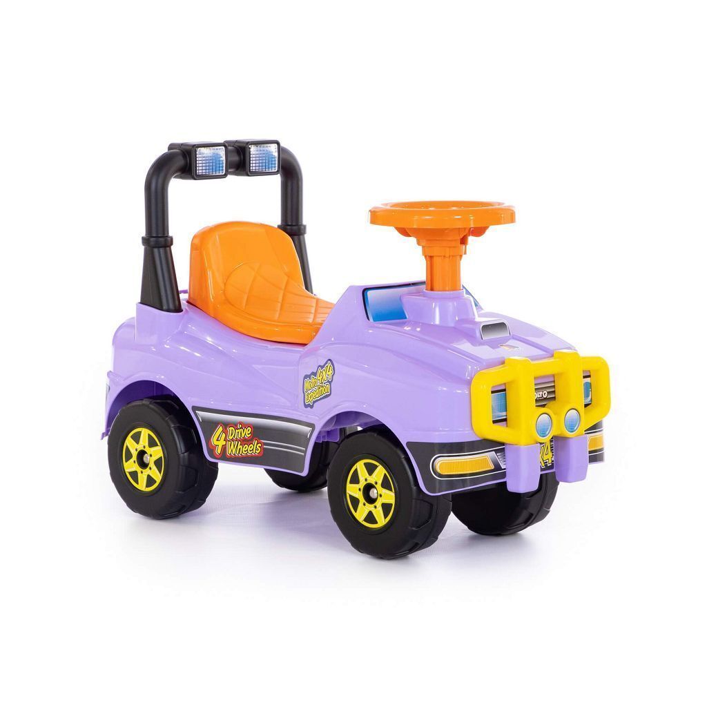 Яркий красочный автомобиль Джип-каталка понравится и мальчикам и девочкам. Удобную посадку, наличие багажника и руля малыш оценит по достоинству. Катание на таком автомобиле подразумевает отталкивание ножками, что в свою очередь развивает мышцы спины, рук, ног. Также езда на каталке улучшает общую координацию движений малыша, приобщает к активному времяпрепровождению. Выполнен джип из качественных материалов, имеет яркую расцветку и наклейки, которые дополняют дизайн.