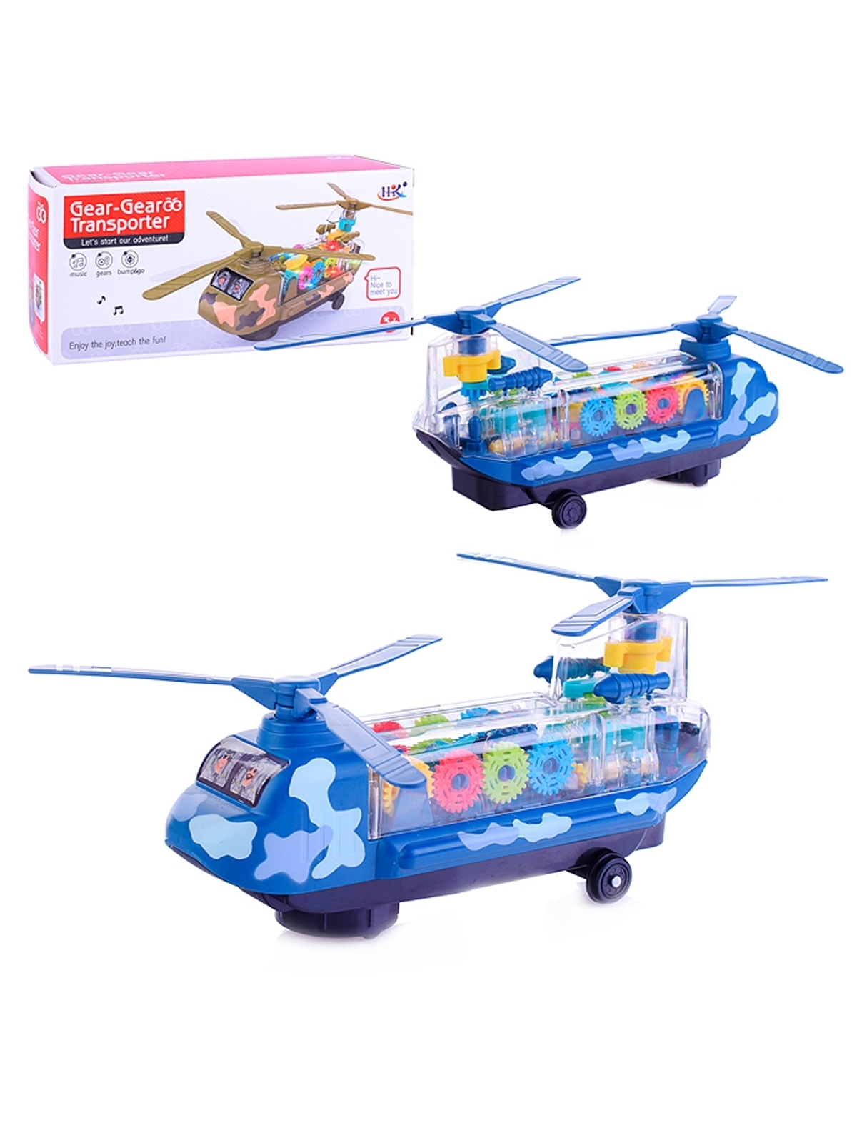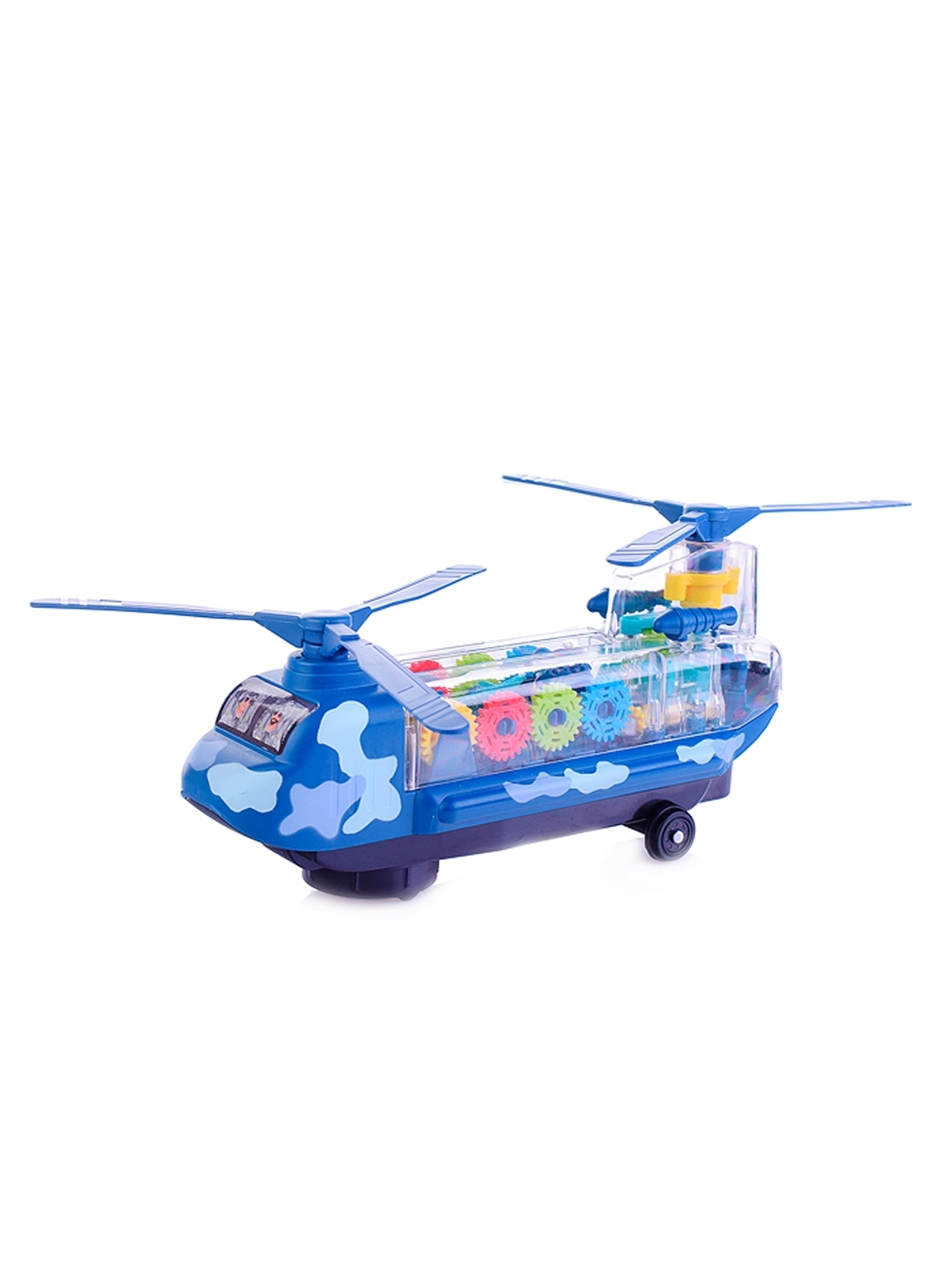 Реалистичные функции: игрушка выполняет плавное движение по кругу, вращает винты, имитирующие реальный полет, и сопровождает его звуками работающего двигателя и световым эффектом корпуса.